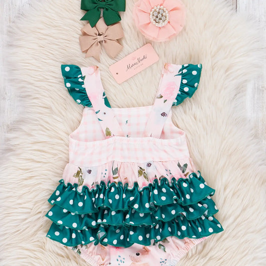 Hunter Green Floral Bunny Ruffle Bubble